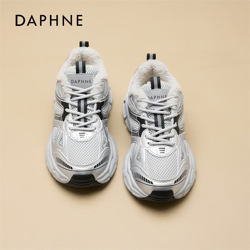 达芙妮银色老爹鞋女2025新款冬加绒加厚保暖棉鞋厚底增高不累脚雪地靴 银色【零下保暖】 35
