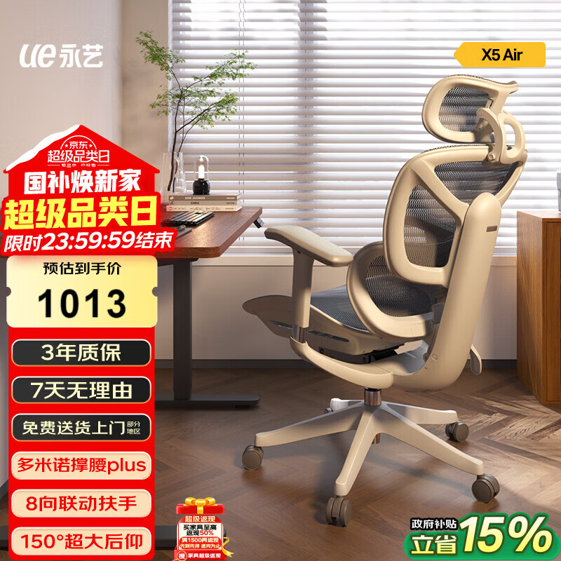 永艺X5 AIR撑腰椅人体工学椅电脑椅子护腰可躺人工力学座椅电竞办公椅 X5 AIR 灰色 4D扶手