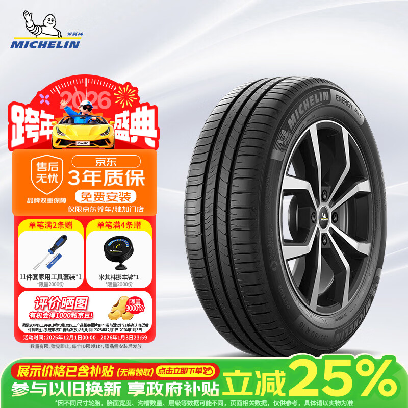 米其林(MICHELIN)汽车轮胎 195/65R15 91V 耐越 ENERGY MILE 适配卡罗拉/朗逸/雷凌