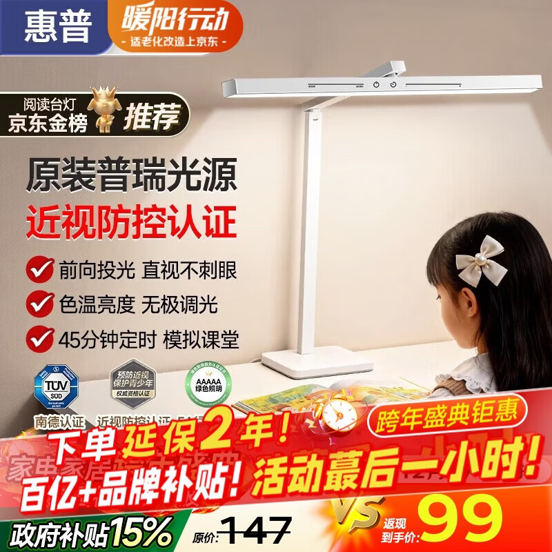 惠普台灯护眼学习学生专用台灯触控调光长条卧室宿舍书桌读写灯天使光