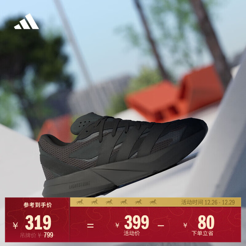 adidas明星同款「流光跑鞋」LIGHTBLAZE超轻防滑跑鞋男女阿迪达斯 黑色/碳黑 42.5