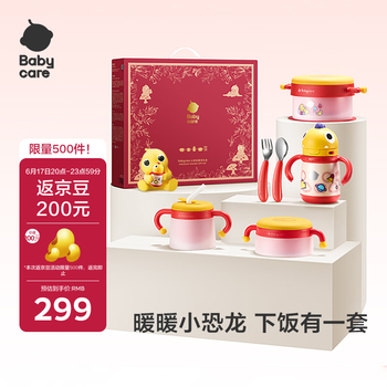 babycare宝宝辅食碗勺子不锈钢儿童餐具水杯学饮恐龙保温杯饭盒新生儿礼盒