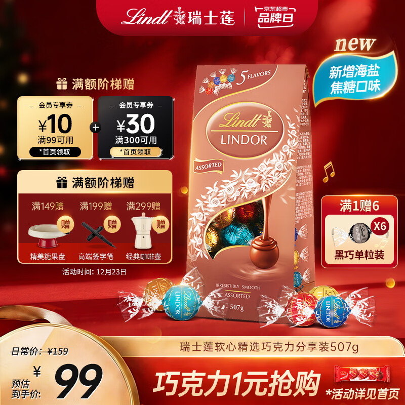 瑞士莲【官方正品】软心精选巧克力507g 袋装 糖果 夹心巧克力 圣诞礼物