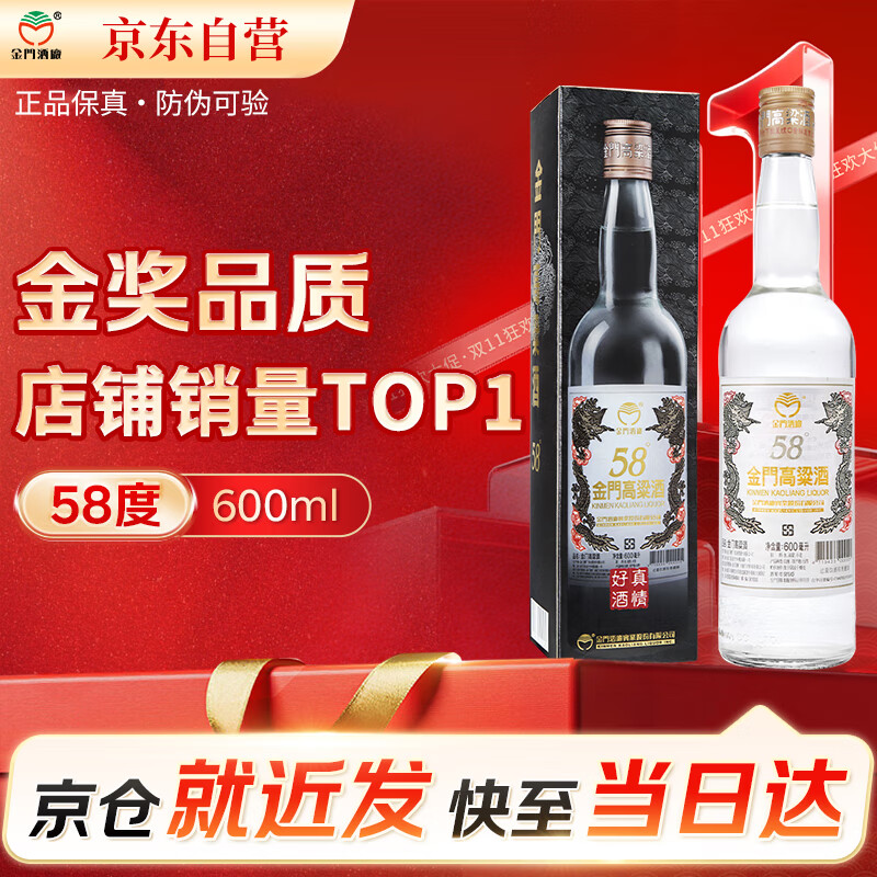 金门高粱 双龙系列白金龙 清香型白酒 58度 600ml 单瓶装
