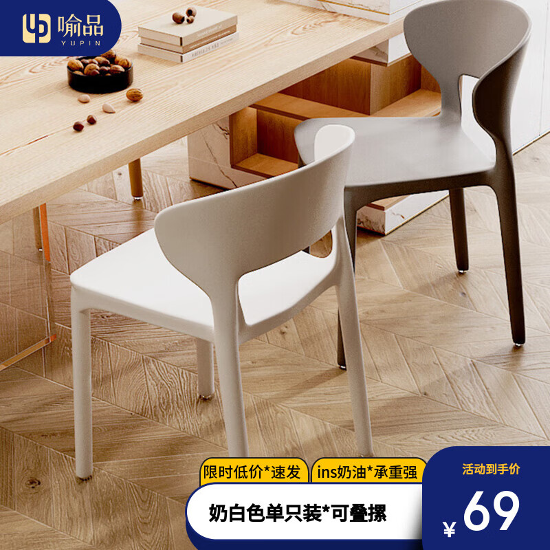 喻品餐椅塑料椅子靠背家用凳子加厚餐厅办公网红简约餐桌椅YK083奶油