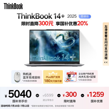 ThinkPad【国家补贴20%】联想ThinkBook14+ 2025轻薄办公 英特尔酷睿Ultra5 14.5英寸 32G 1T 3K笔记本电脑