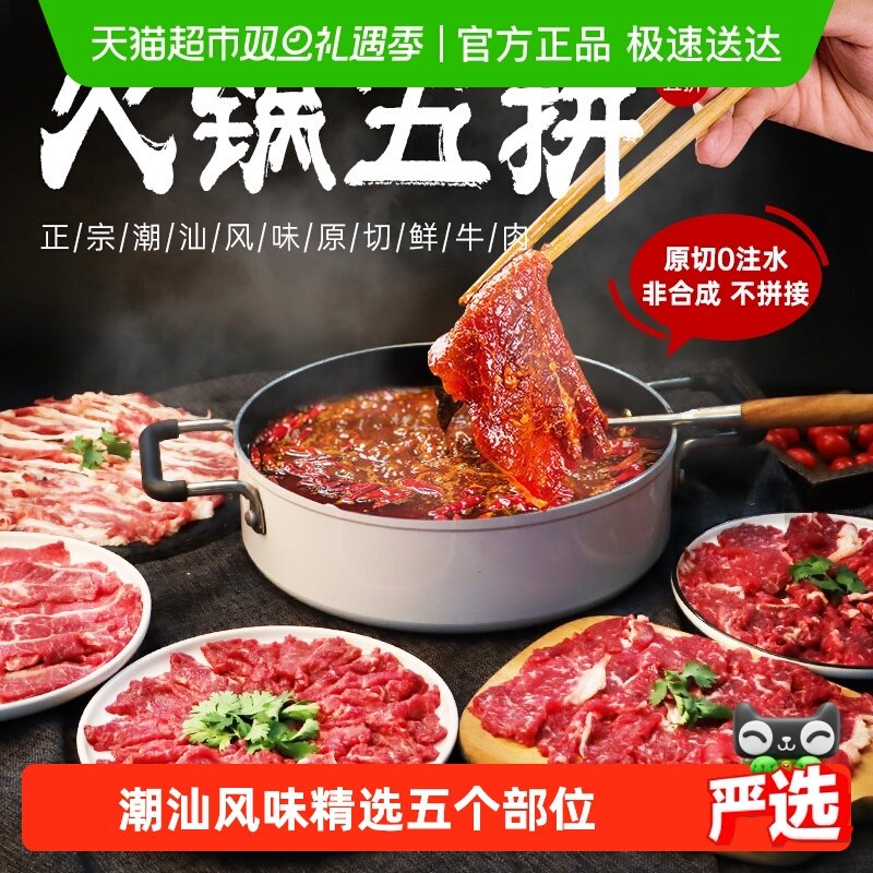 暖男厨房潮汕原切牛肉火锅食材套餐吊龙雪花嫩肉肥胼牛肉丸生牛肉