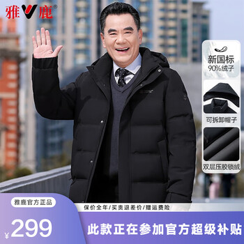 雅鹿羽绒服男2024秋冬季新款连帽可拆卸短款加厚商务休闲爸爸冬装外套 黑色 XL (180)