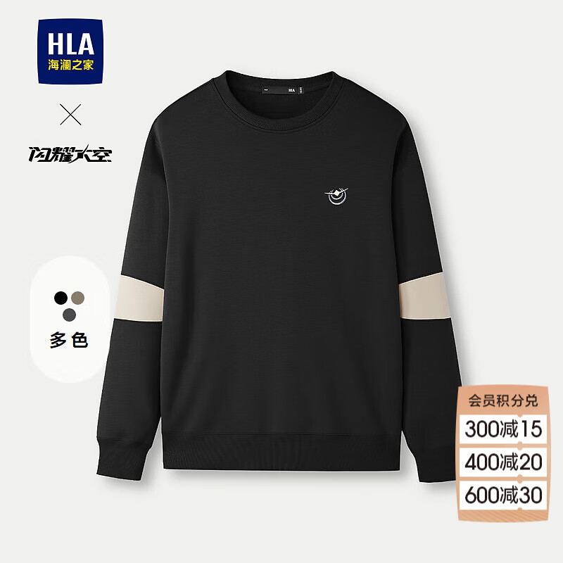 海澜之家(HLA)卫衣男25春夏圆领绣花镶拼时尚长袖男春秋季 黑色镶拼19 185/100A 2XL推荐165~180斤