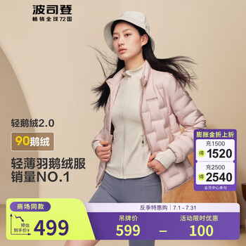 波司登(BOSIDENG)【断码清仓】谷爱凌同款90鹅绒轻薄羽绒服女款修身立领保暖外套 苏梅粉1617 S 160/84A