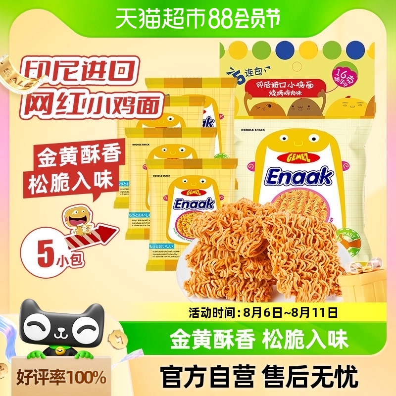 印尼进口GEMEZ休闲网红追剧膨化零食烧烤味小鸡干脆面16g*5包