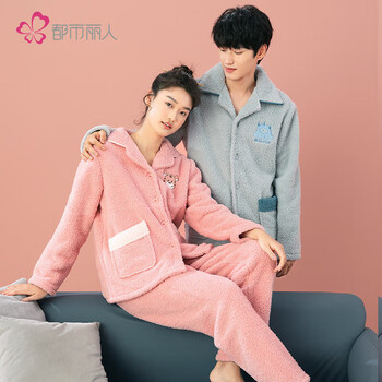 都市丽人睡衣女套装情侣加厚翻领刺绣米粒绒珊瑚绒宽松家居服2H2107