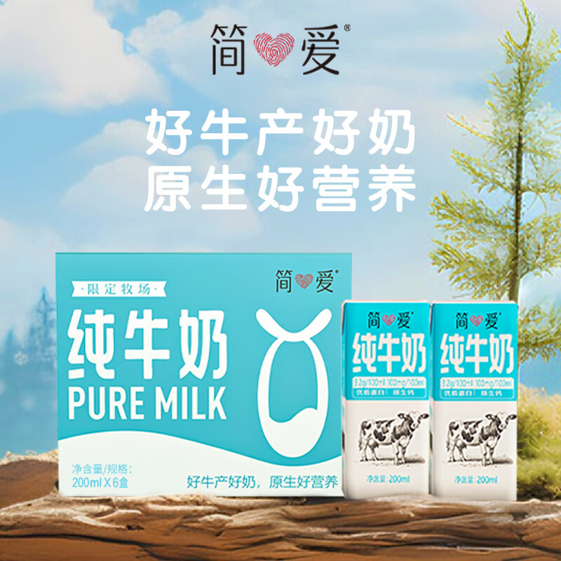 简爱纯牛奶常温整箱 限定牧场优质蛋白 200ml*6盒