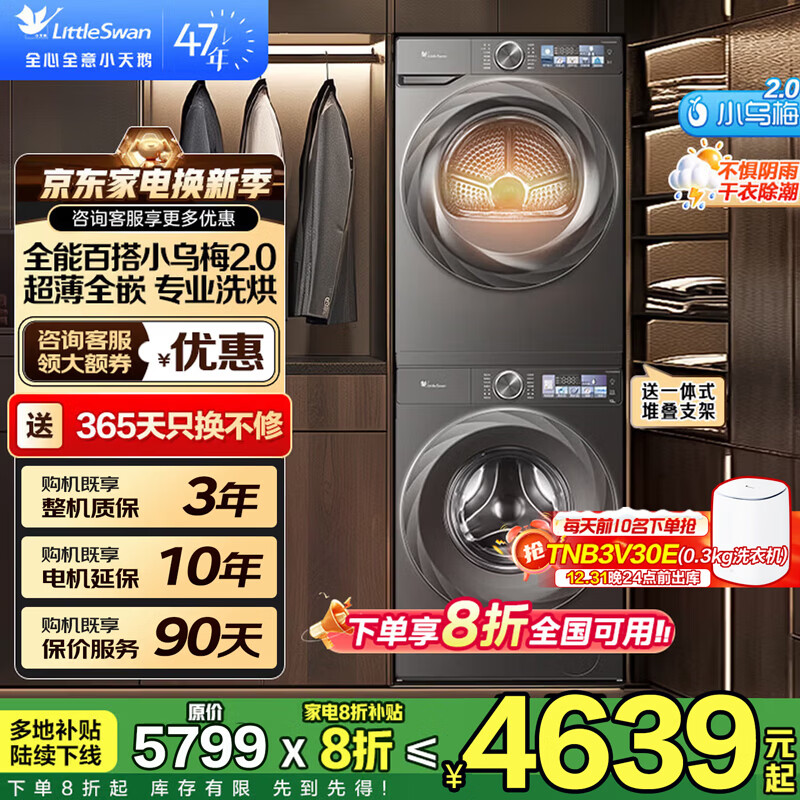 小天鹅(LittleSwan)小乌梅2.0洗烘套装10kg滚筒洗衣机水魔方超微净泡+10kg蒸汽护理变频热泵烘干机 超薄全嵌83PRO套装 【小乌梅2.0】10+10kg套装变频透烘