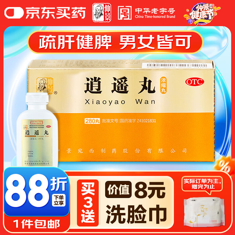 仲景 逍遥丸(浓缩丸)280丸/瓶 疏肝健脾 养血调经 用于肝气不舒所致月经不调 胸胁胀痛 头晕目眩 食欲减退