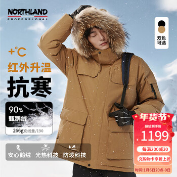 诺诗兰(NORTHLAND)冬季户外男士90鹅绒羽绒服防泼保暖可升温连帽派克服 NDJDT0661E 焦茶色 L (175)