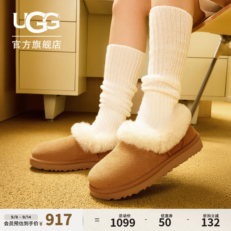 UGG秋季女士时尚舒适茸茸毛圈口平底休闲乐福鞋懒人毛毛鞋1119002 CHE | 栗色 38