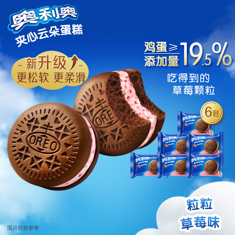 奥利奥(Oreo)夹心云朵蛋糕粒粒草莓味6枚132g 糕点休闲零食 早餐下午茶