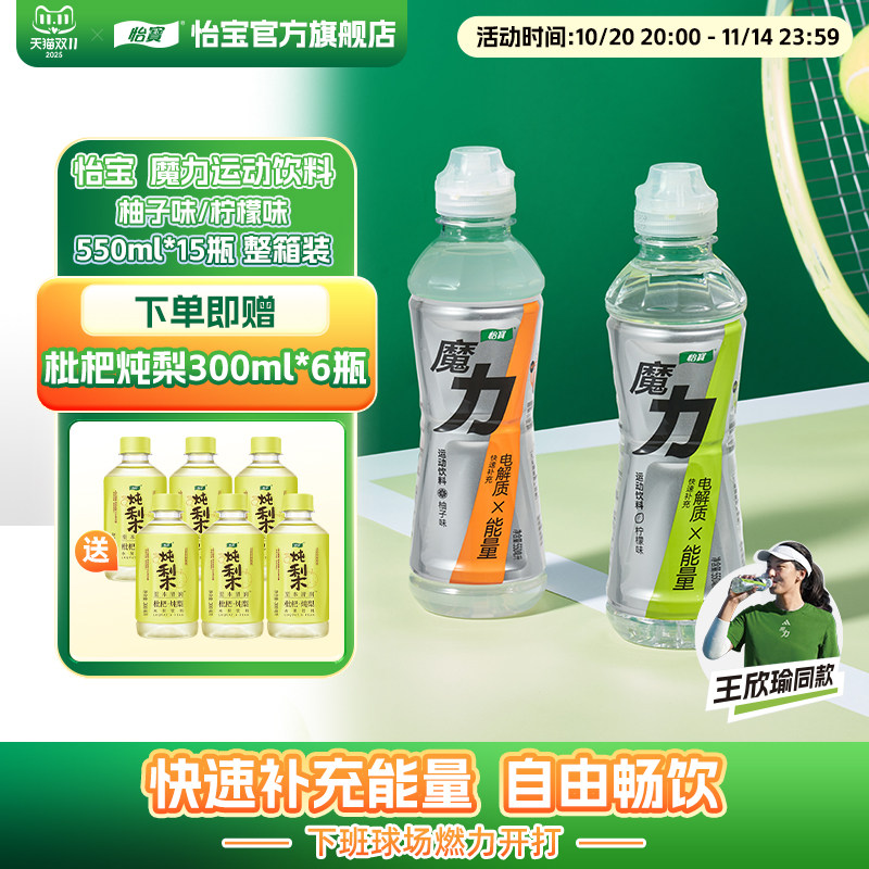 王欣瑜同款怡宝魔力运动饮料柠檬味柚子味550ml*15瓶运动盖饮料