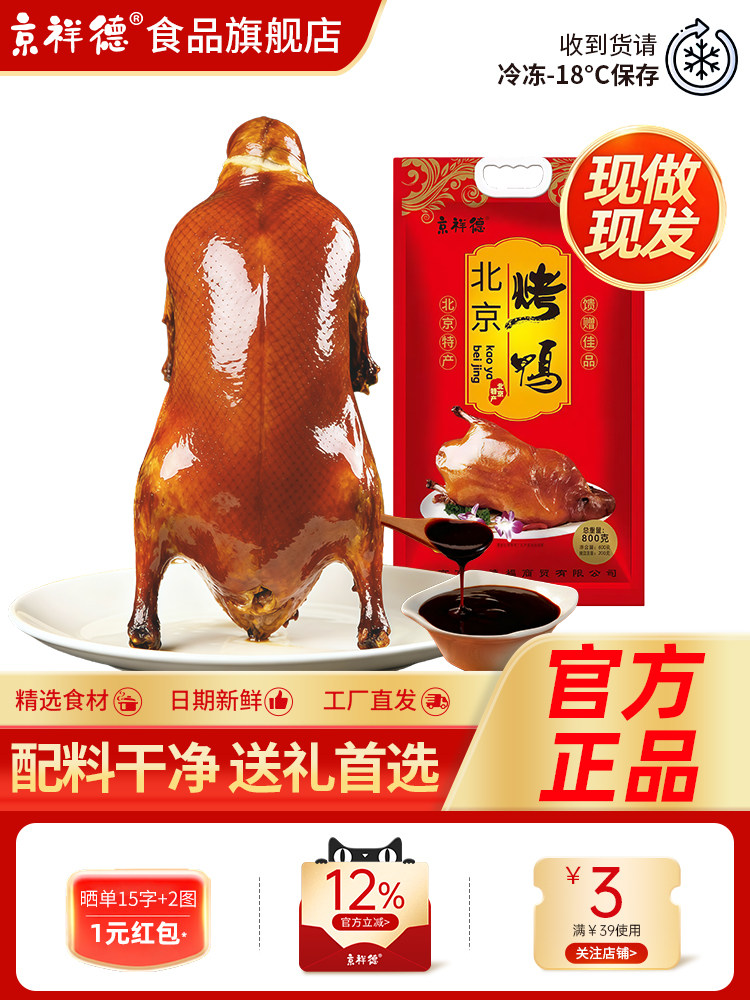 京祥德北京烤鸭熟食卤味加热即食北京特产熟食礼袋礼盒过节送礼