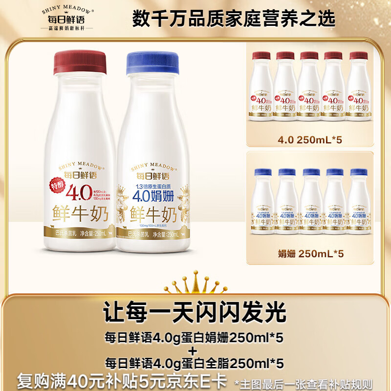 每日鲜语鲜牛奶 娟姗4.0g蛋白质250ml*5+4.0g蛋白质250ml*5 共10瓶
