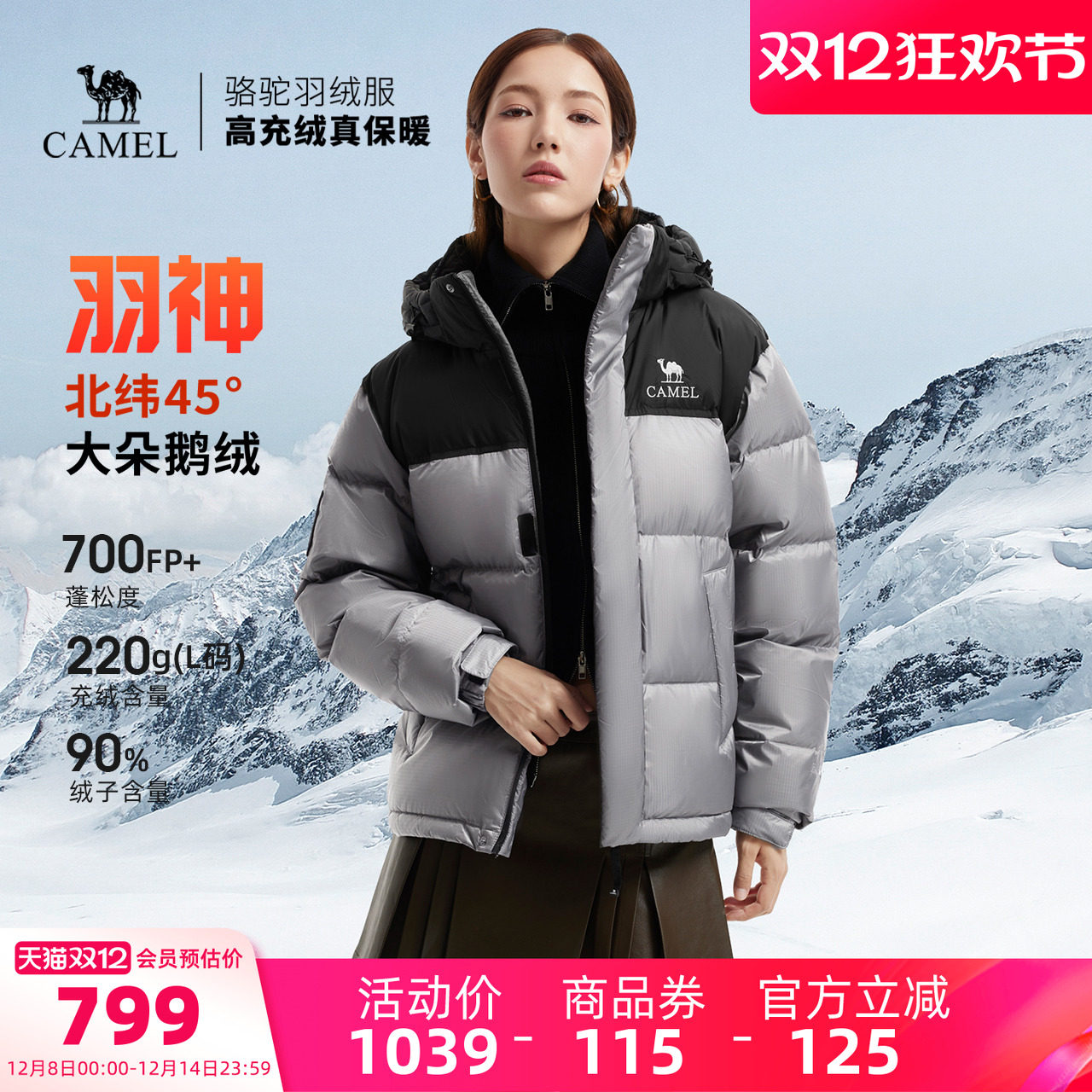 【迪丽热巴同款】骆驼羽神PRO鹅绒羽绒服女装冬加厚连帽羽绒外套