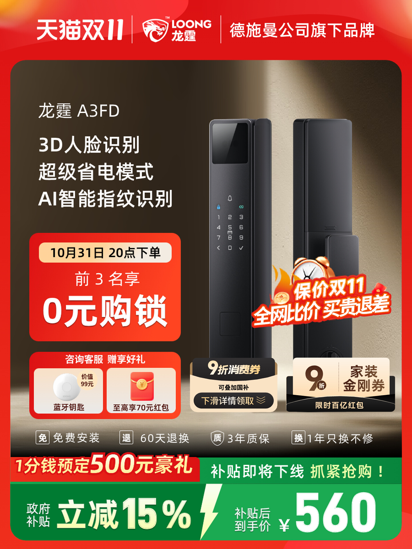 德施曼旗下龙霆A3FD智能锁自动指纹锁家用防盗门人脸识别智能门锁