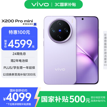 vivo X200 Pro mini 12GB+256GB 淡紫 6.31英寸纤薄小直屏 蔡司超级长焦 5700mAh蓝海电池手机