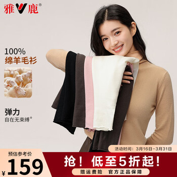 雅鹿羊毛衫女100%纯羊毛2023新款高领纯色时尚毛衣秋冬季打底针织衫 卡其色 L