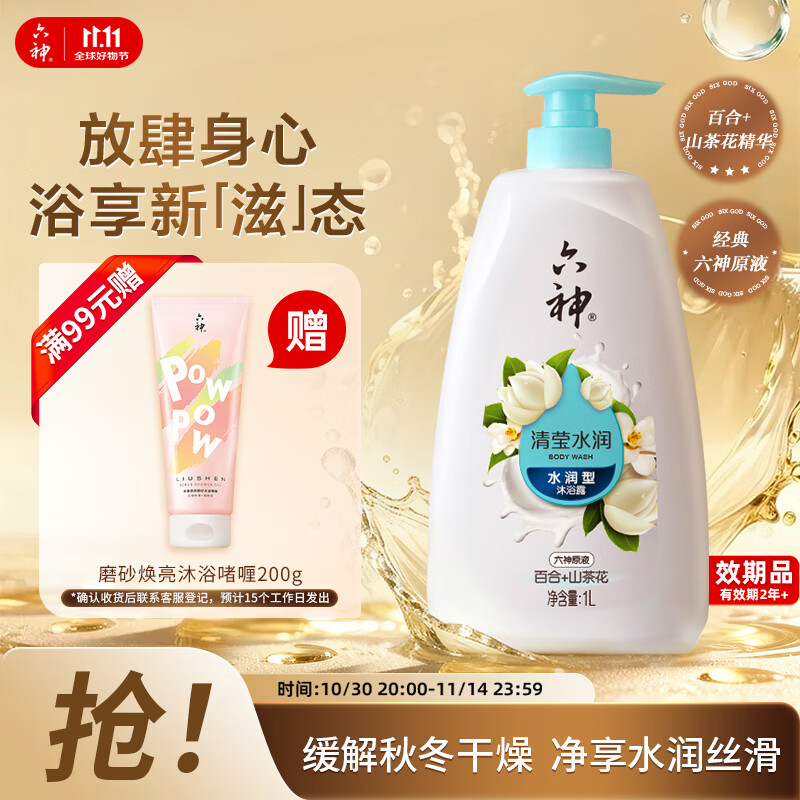 六神沐浴露持久留香72小时香体清莹水润沐浴露1L不假滑女士沐浴液