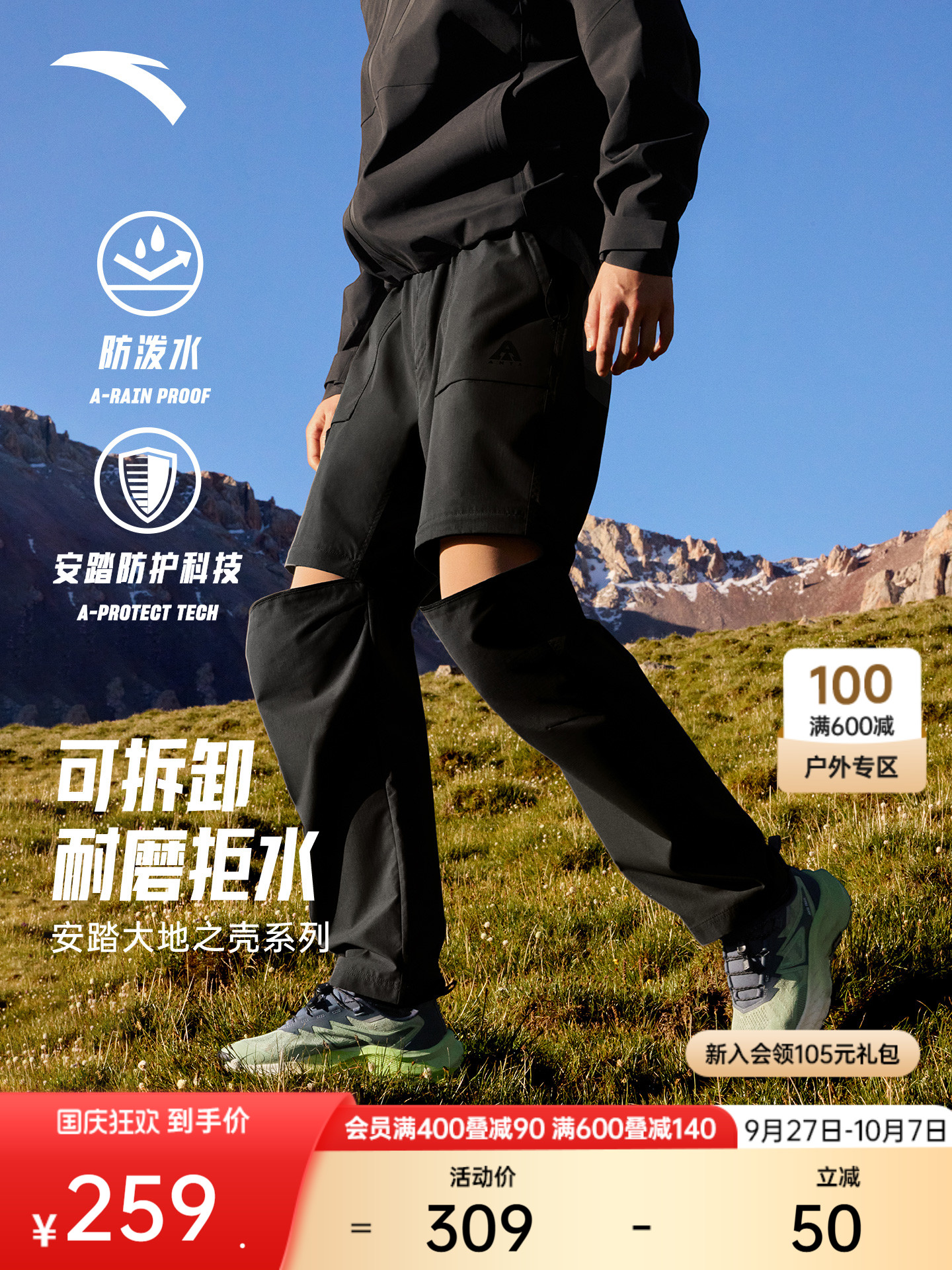 安踏山壳裤丨大地之壳3.0户外三防梭织两穿运动长裤男工装登山裤