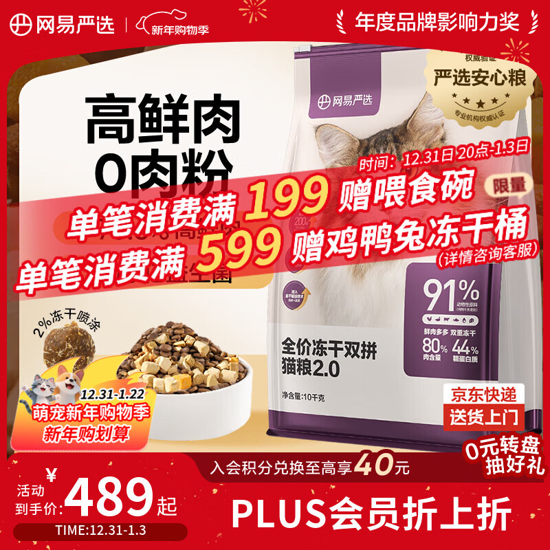 网易严选全价冻干双拼猫粮 主粮成幼猫无谷高鲜肉好适口 美毛护胃囤货10kg