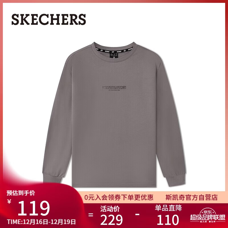 斯凯奇(Skechers)男女同款休闲针织长袖T恤衫L325U096
