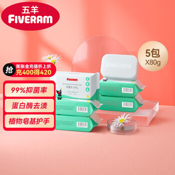 五羊(FIVERAMS) 婴儿宝宝抑菌洗衣皂 儿童清洁洗衣皂组合批发内衣皂尿布皂 抑菌皂80g*5包