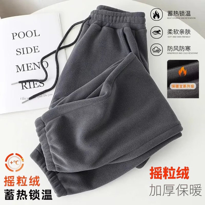 布卡澜琦双面摇粒绒裤子男款冬季摇粒绒男裤双面抓绒卫裤加厚男士保暖裤子 深灰色 XL (建议110-125斤)