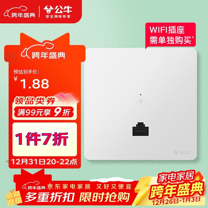 公牛(BULL)墙壁式无线WIFI插座 路由器面板电脑网络插座GTW06-01暮雪白面盖