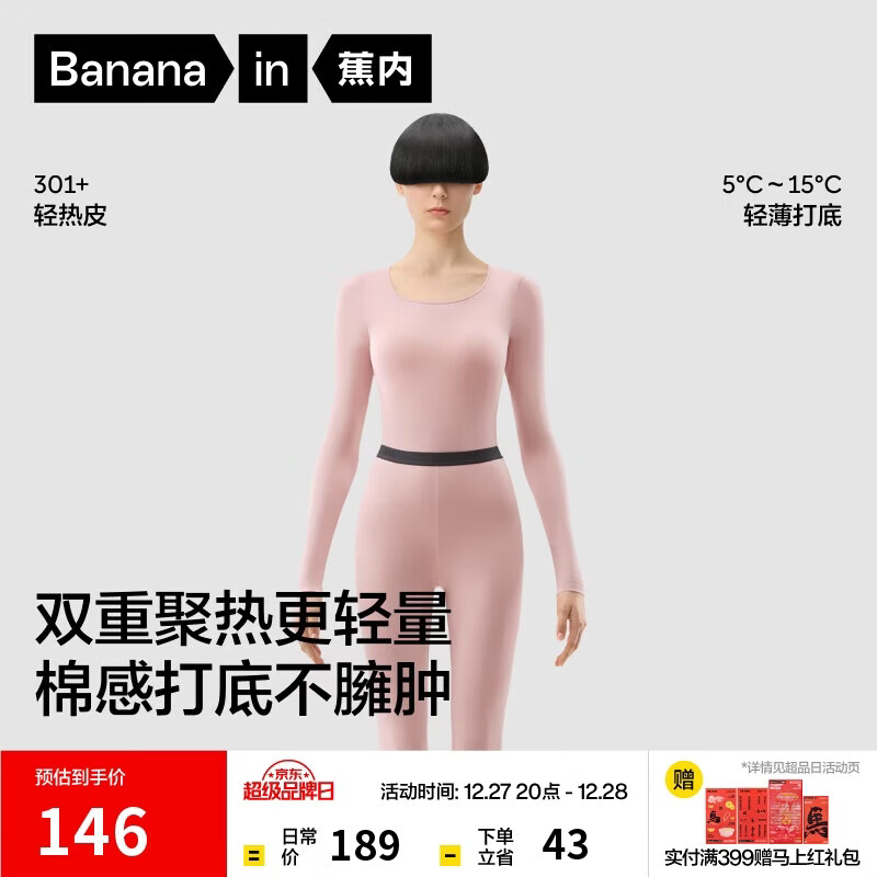 蕉内热皮301+男女士保暖内衣套装秋衣秋裤锁温棉感无痕打底衣秋冬季