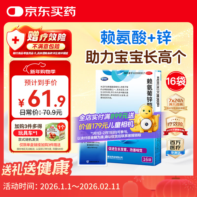 巨可生 赖氨葡锌颗粒(无糖)16袋/盒 用于防治小儿及青少年因缺乏赖氨酸和锌而引起的疾病
