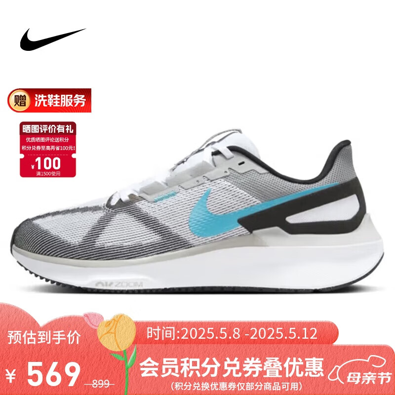 耐克NIKE男跑步鞋AIR ZOOM STRUCTURE 25运动鞋DJ7883-109白灰42