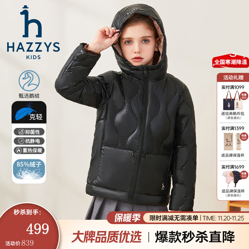 ¹þ¼ªË¹£¨HAZZYS£©Í¯×°ÄÐŮͯÓðÈÞ·þ¶¬Ð¿îºìÆ·ÒÖ¾ú·À¾²µç·À·ç±£Å¯Çᱡ¿îÓðÈÞ·þ ×êʯºÚ 155