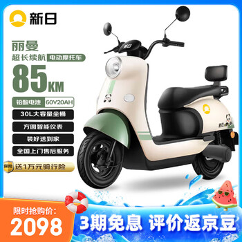 新日【高考礼物】电动摩托车丽曼【5块铅酸电池-续航85km-1200W电机】液压减震30L大座桶家用代步车绿