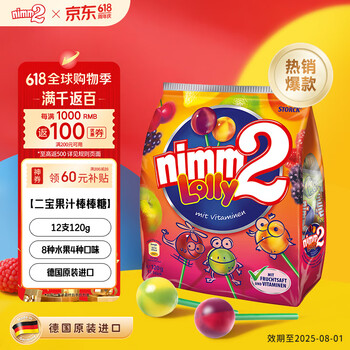 二宝(Nimm2)德国原装进口果汁棒棒糖12支120g维生素糖果儿童零食伴手礼物