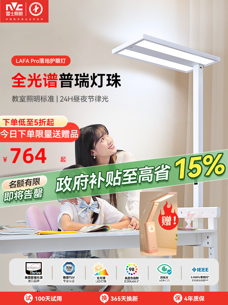 雷士照明官方未来光lafaPro大路灯儿童学习专用落地护眼台灯立式