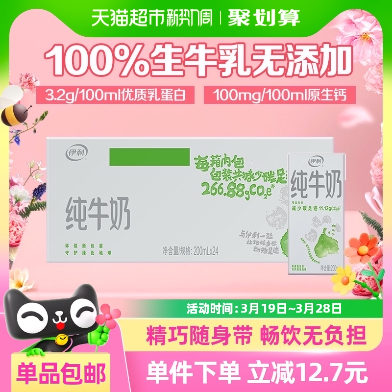伊利纯牛奶200ml*24盒整箱便携优质乳蛋白学生营养早餐奶