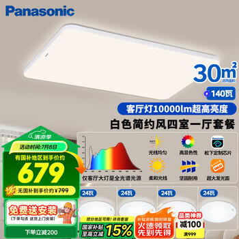 松下(Panasonic)吸顶灯客厅灯全光谱高亮度超薄护眼 白色简约风四室一厅套装灯