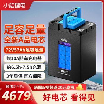 小哈电动车锂电池72V57Ah 外卖大容量 雅迪爱玛电瓶车电池赠10A充电器