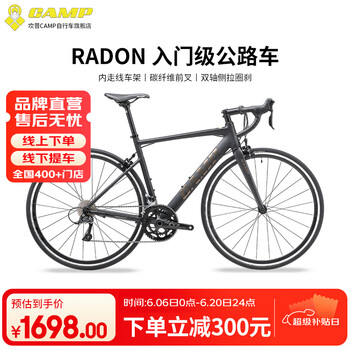 坎普(CAMP)RADON 公路车铝合金顺泰18变速单车圈刹运动赛车碳纤维前叉自行车 黑金刚 18速 480码