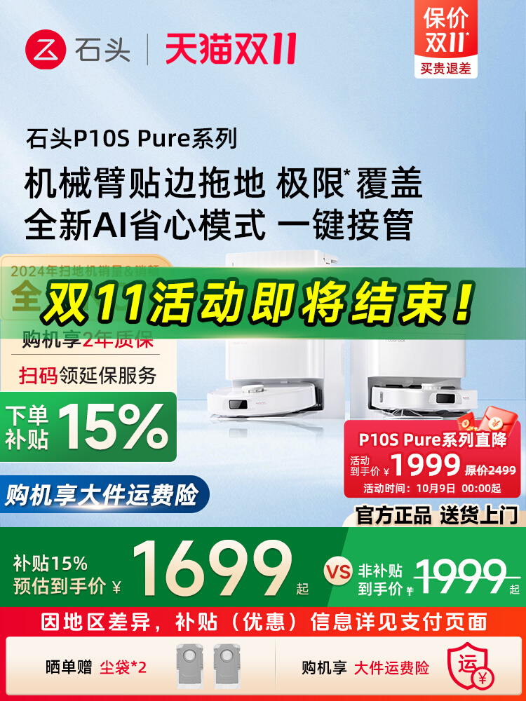 【政府补贴15%】石头扫地机器人P10S Pure/Pro全自动清洁扫拖一体