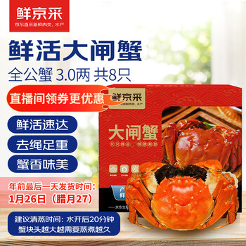 【活蟹】鲜京采鲜活大闸蟹 全公蟹3.0两 4对8只 去绳足重 源头直发 螃蟹年货礼盒