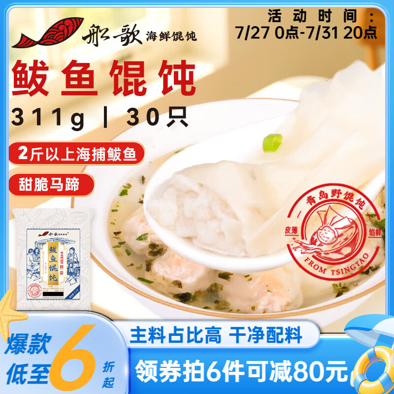 船歌鱼水饺 青岛特色鲅鱼野馄饨311g30只 儿童早餐抄手小云吞 紫菜虾皮混沌